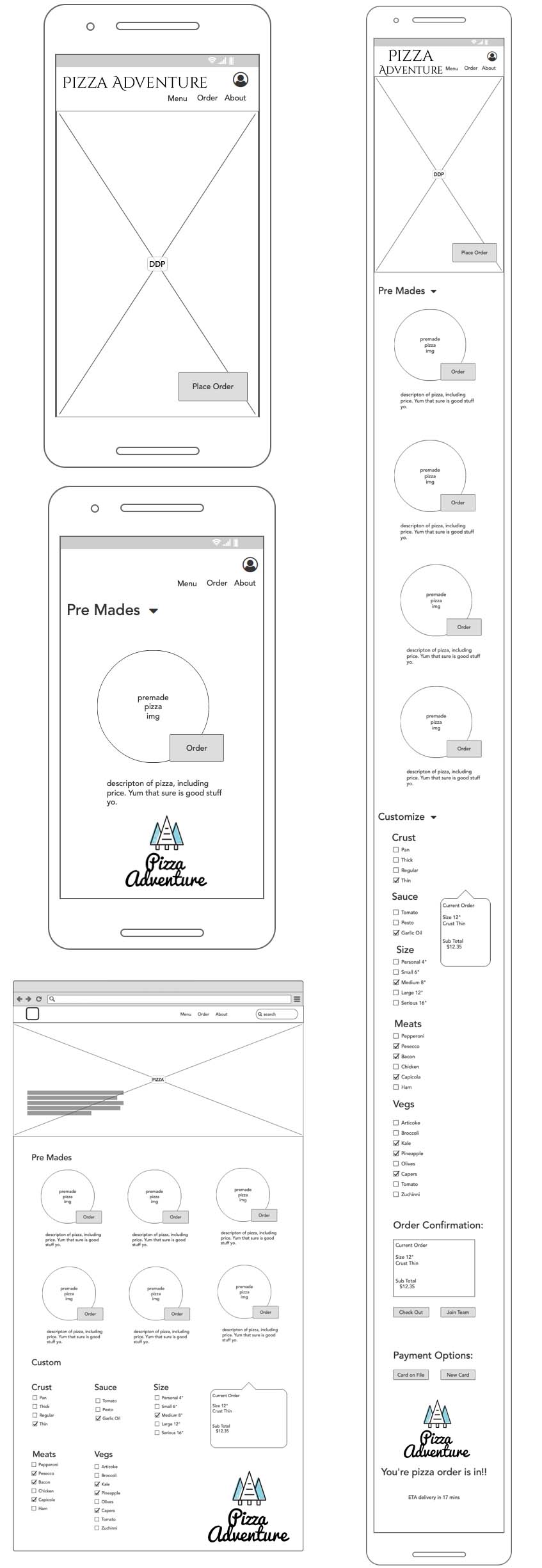 Pizza Adventure is a delivery-only pizza restaurant concept intended for busy office workers in the downtown core. The intention of the project was to come up with a concept to create a food delivery app to get the users exactly the type of pizza they want. No matter what kind of pizza is needed, Pizza Adventure will find the best place possible.